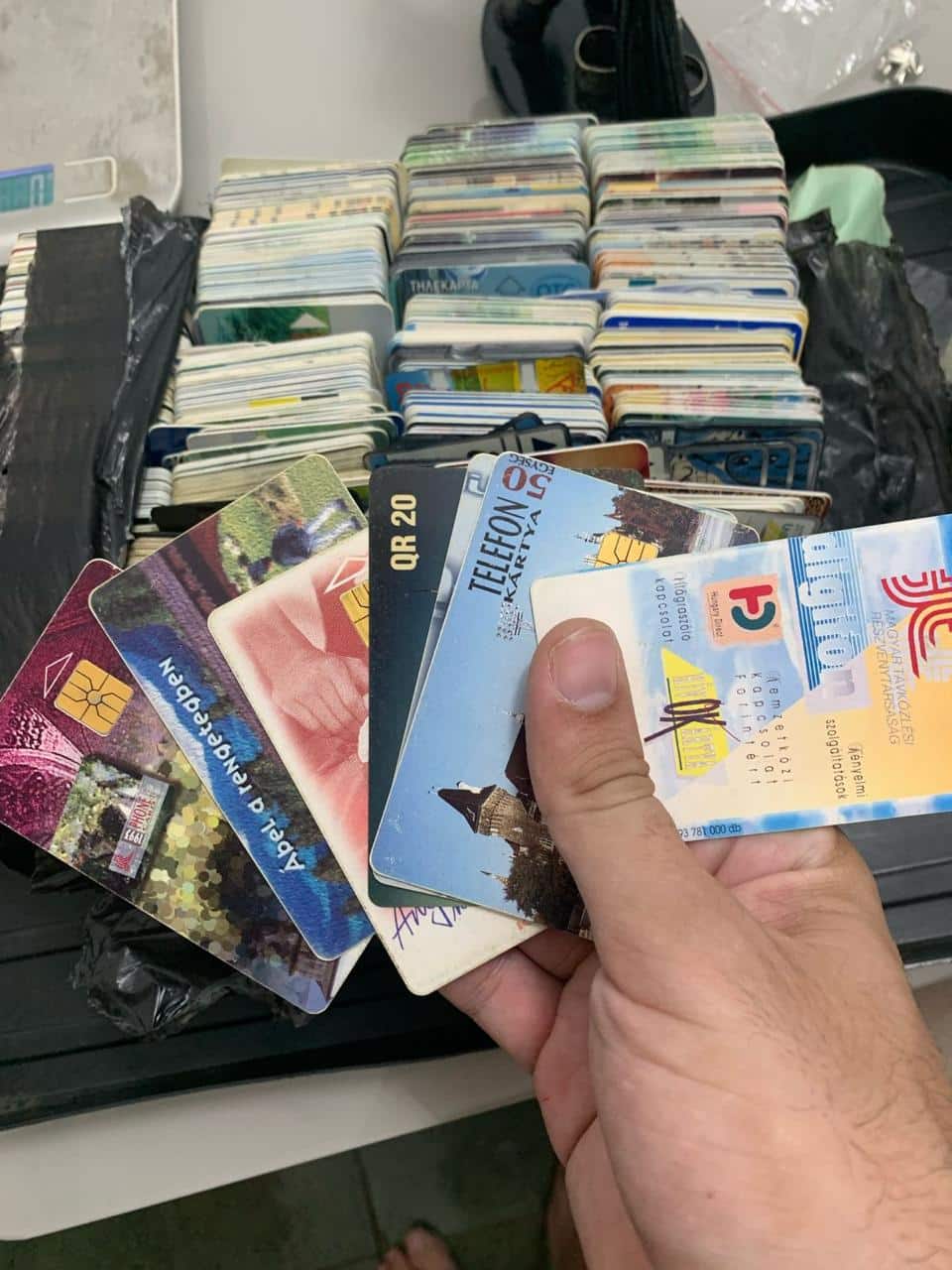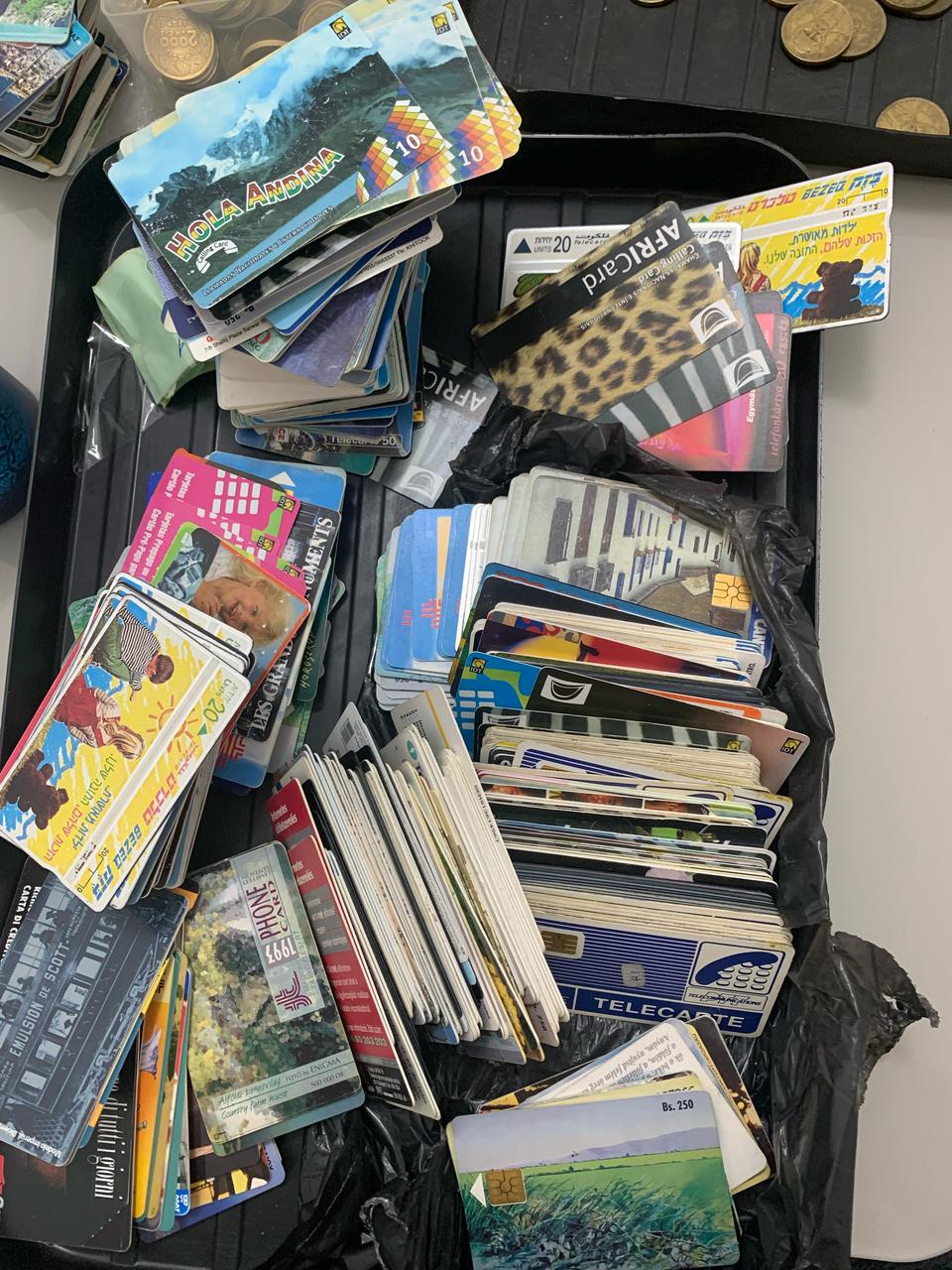 Lote contendo aproximadamente 1kg de cartões telefônicos internacionais, ideal para colecionadores que buscam diversidade e peças do mundo todo.