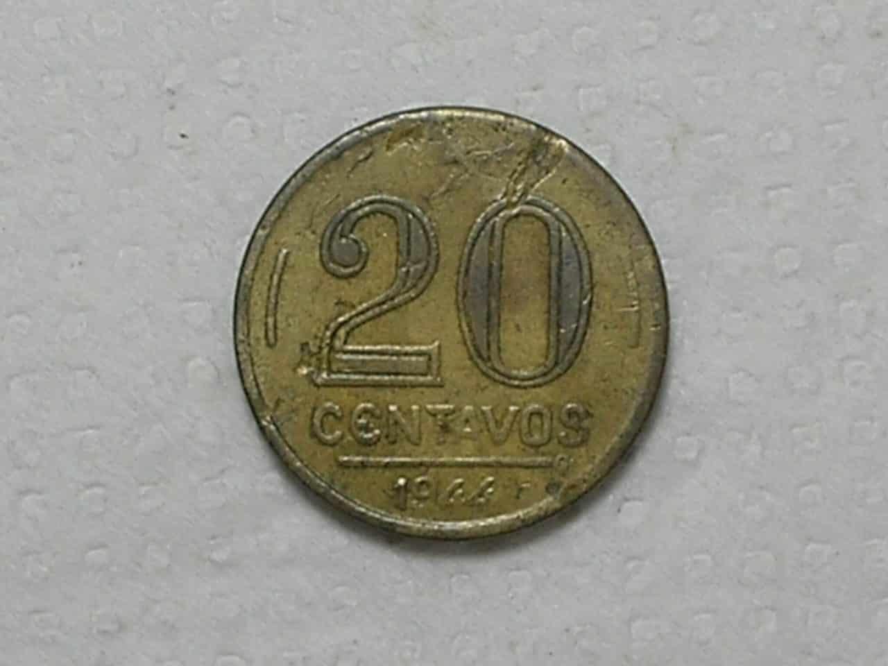 20 Centavos -1944 sem sigla mas com anomalia de cunho / m50