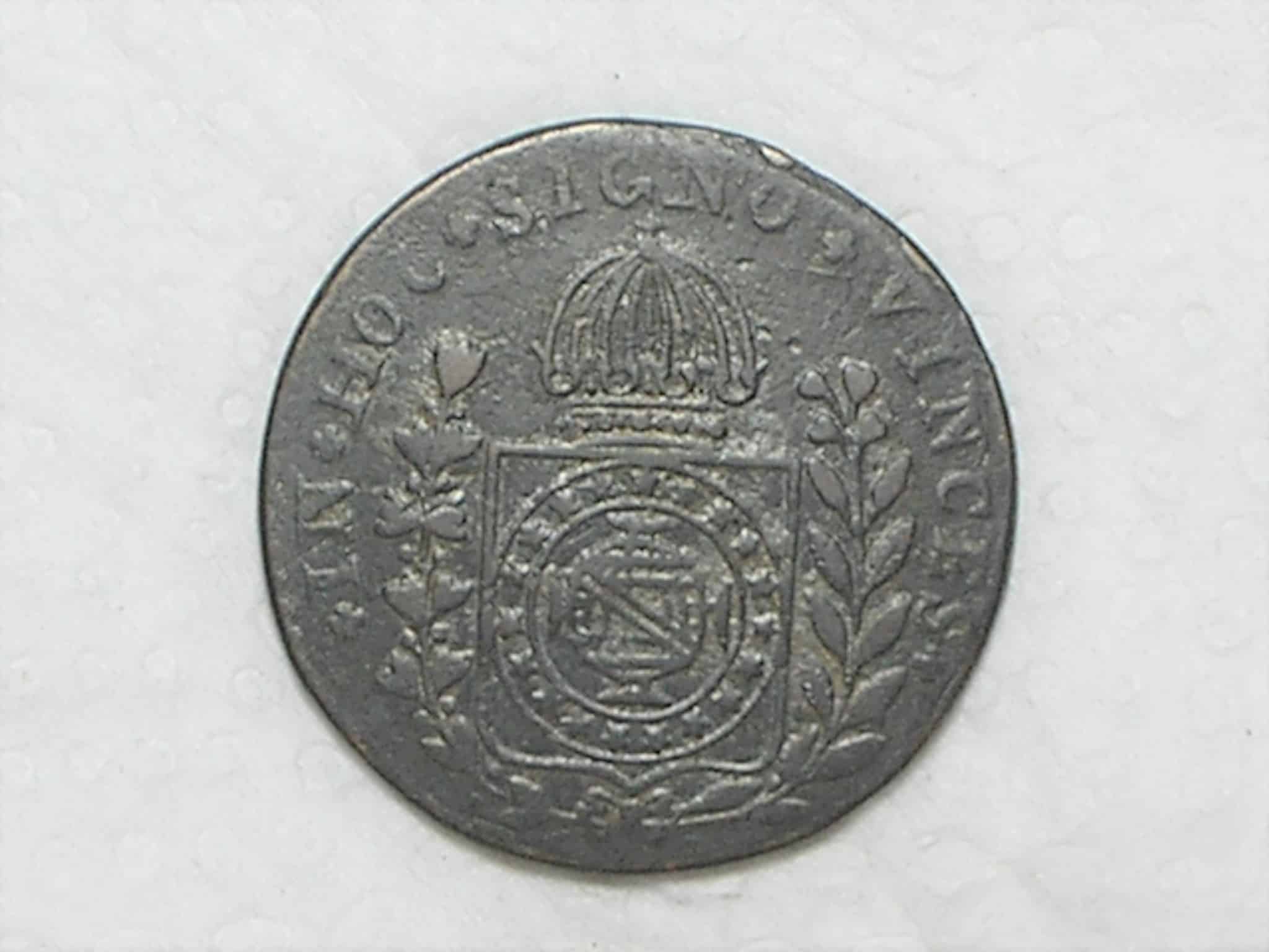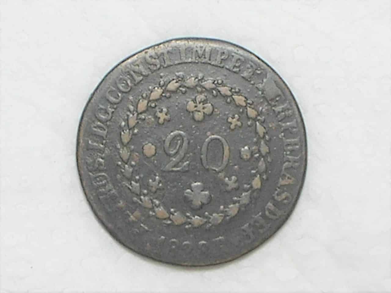 Especificação: 20 Réis – 1828 Rio = 24 Tulipas / Florões Verticais / Império D. Pedro I / Cobre / Mbc / c800