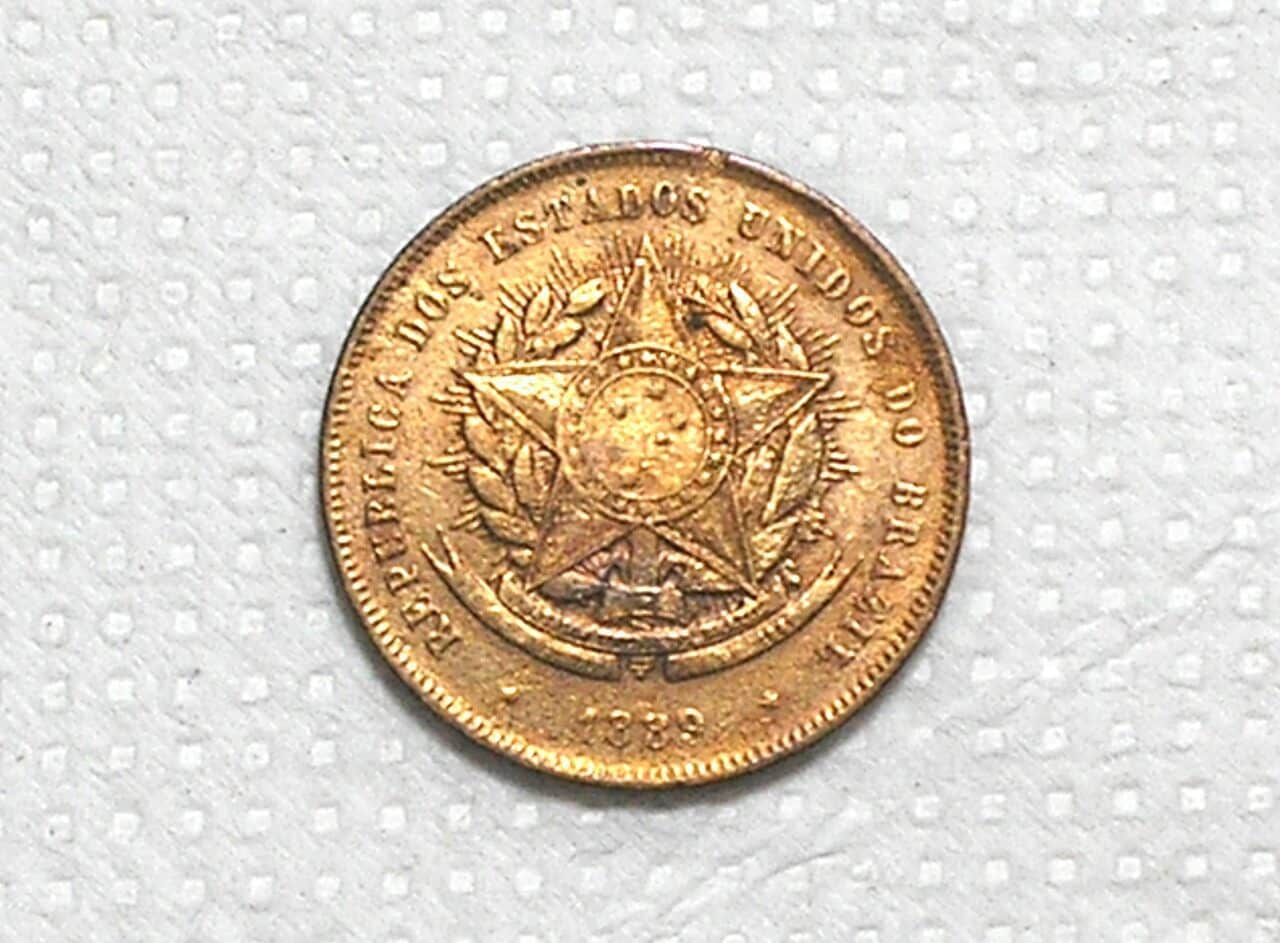 Especificação: 20 Réis – 1889 / República / Bronze / Soberba / Cod. 910