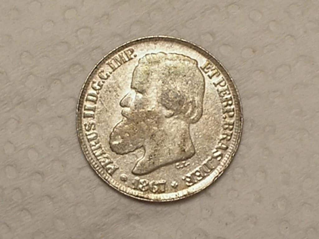 Especificação: 200 Réis – 1867 / Império de Petrus II – Prata / Mbc / Cod. 380.4