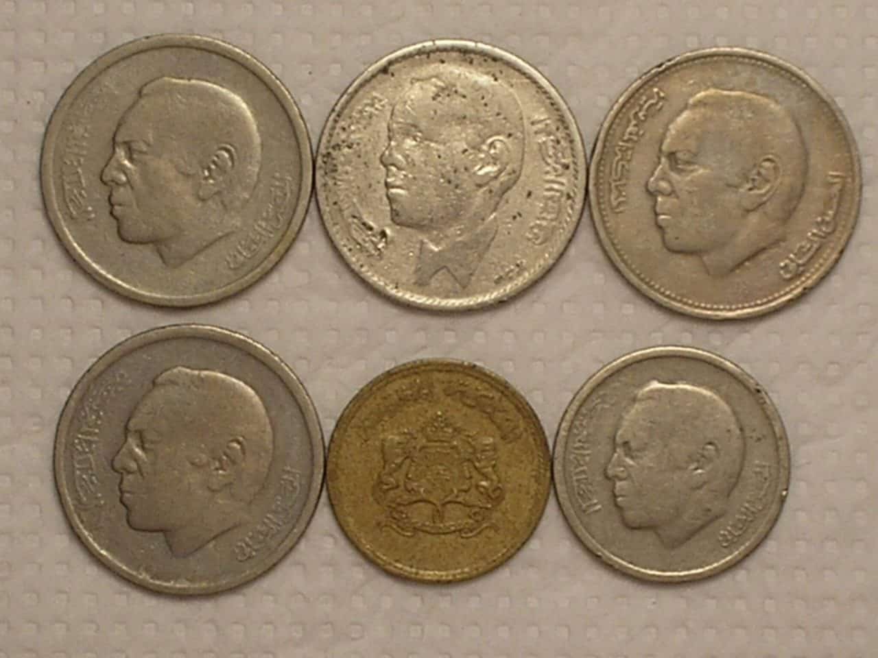 6 Moedas antigas de Marrocos datas de 1965/1975/1987 / Cod. 240