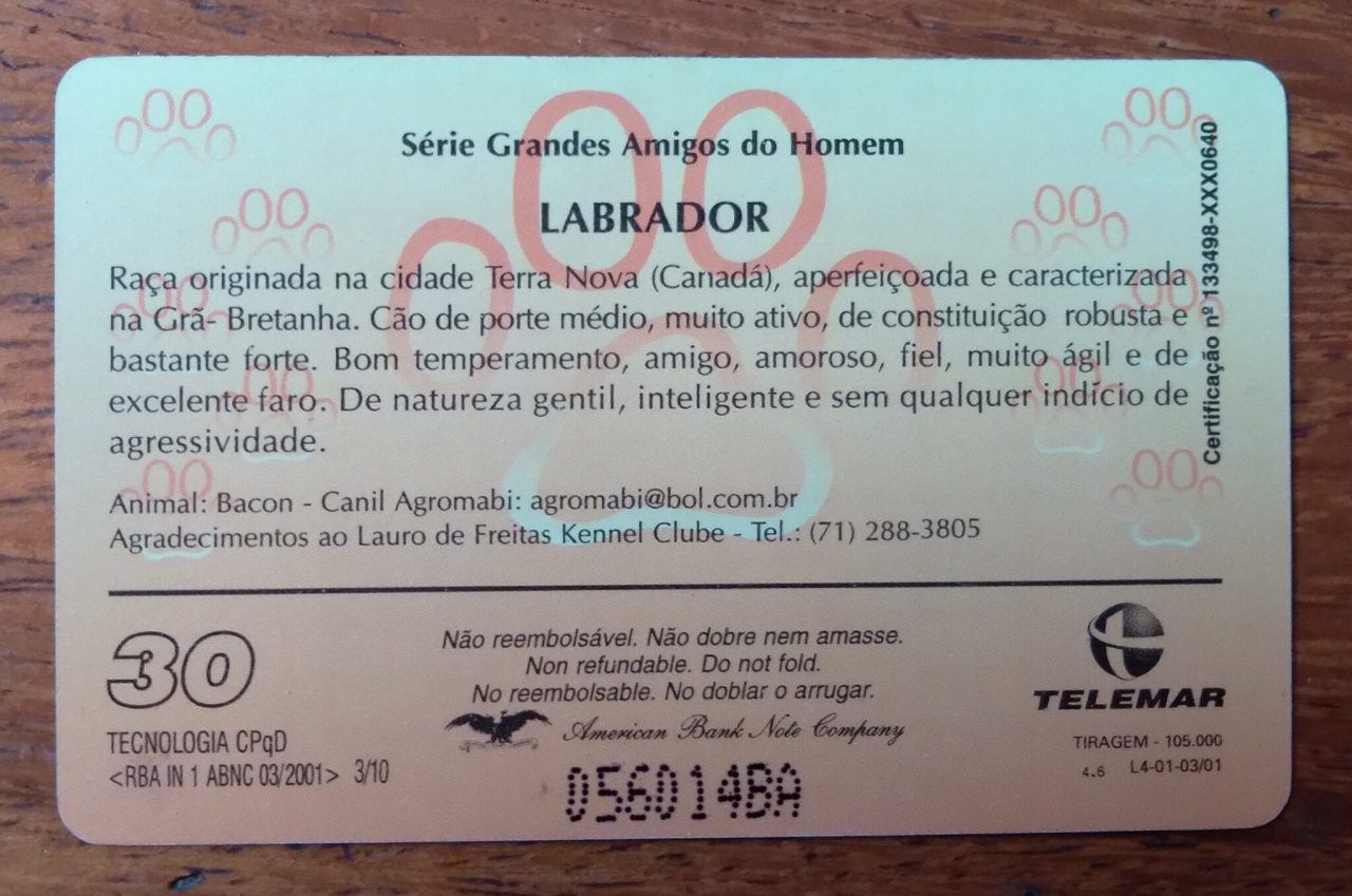 Especificação: Brasil Telemar 2001 / Grandes Amigos do Homem 3 / Labrador ct indutivo.