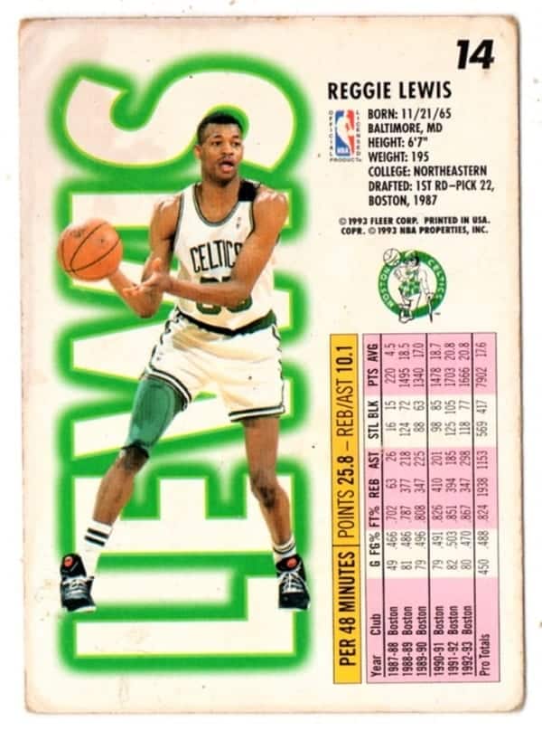 Especificação: Card Fleer NBA – 14 – Reggie Lewis – Boston Celtics – 1993 / 1994