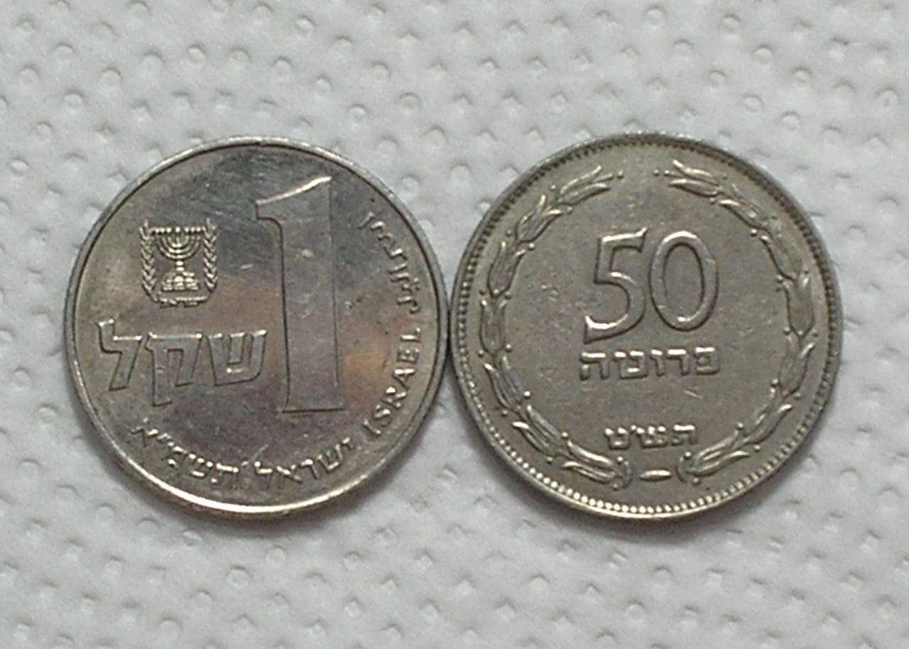 Especificação: Israel) 50 Prutot – 1949 + 1 Sheqel – 1981 / Co/Ni / box58