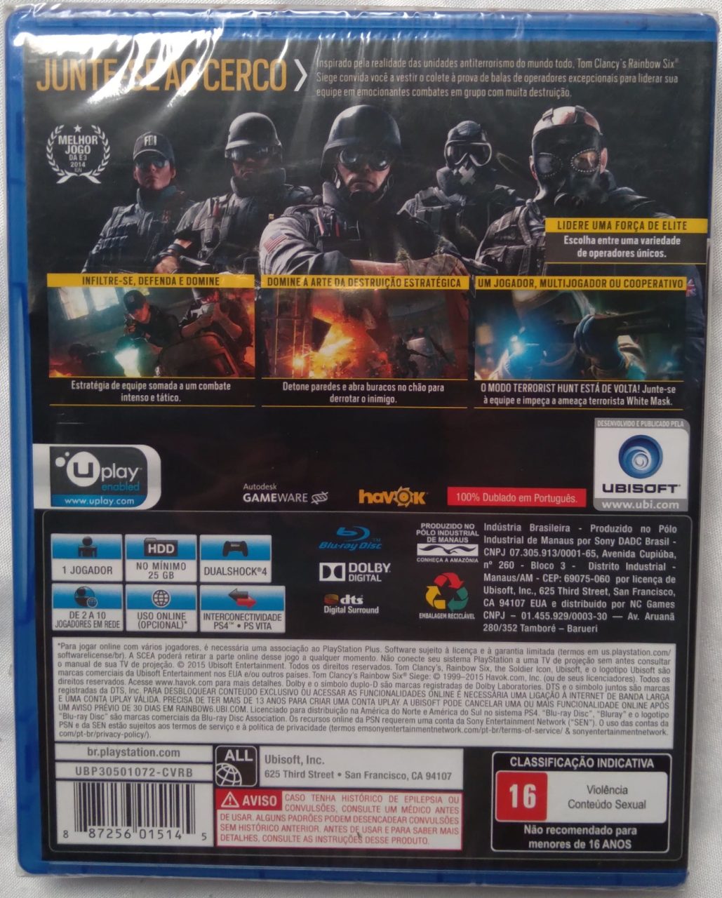 Especificação: Jogo PS4 Tom Clancy’s Rainbow six siege. Junte-se ao cerco