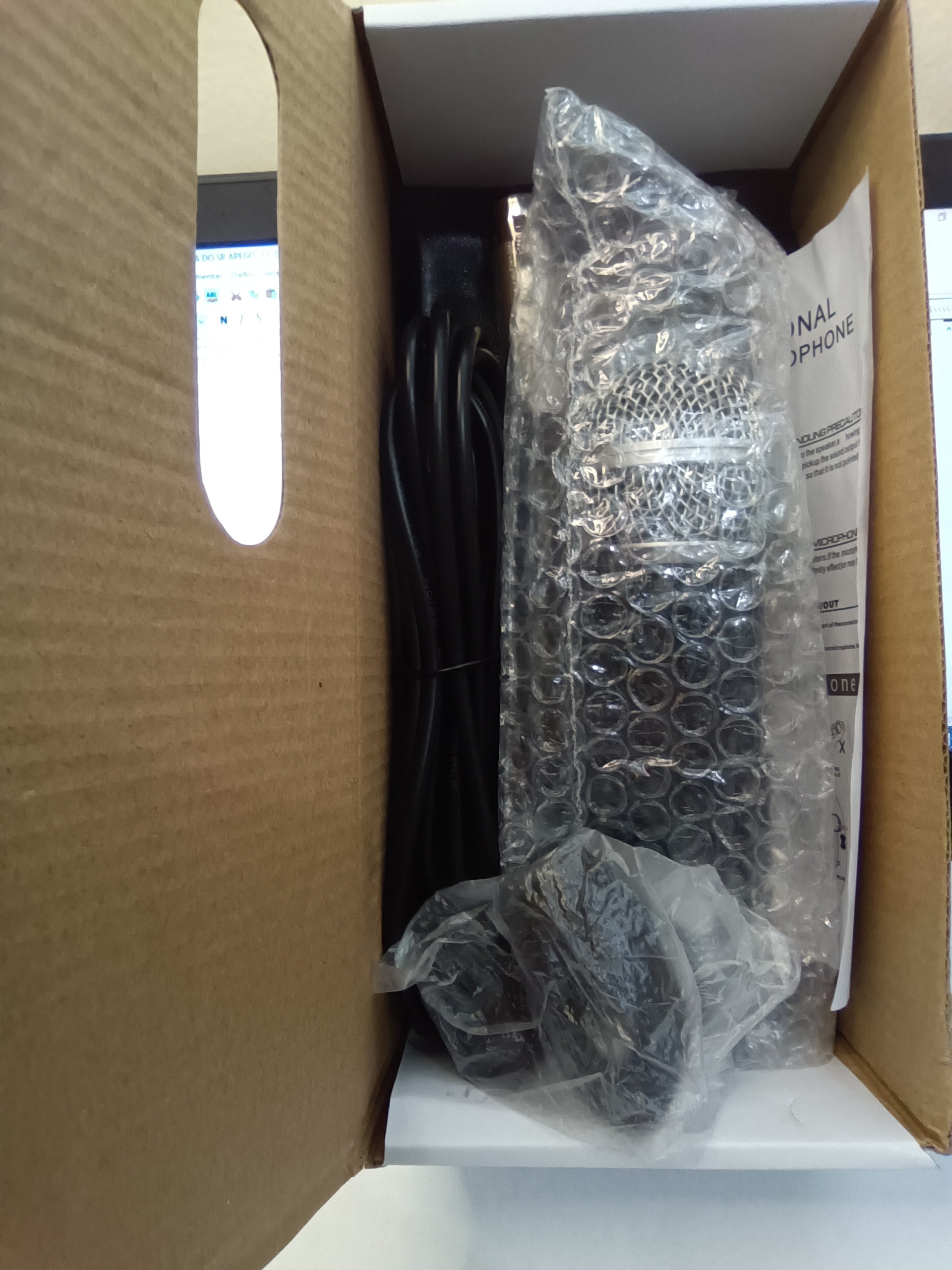 Especificação: Microfone dinâmico novo, com cabo, cachimbo e bolsa