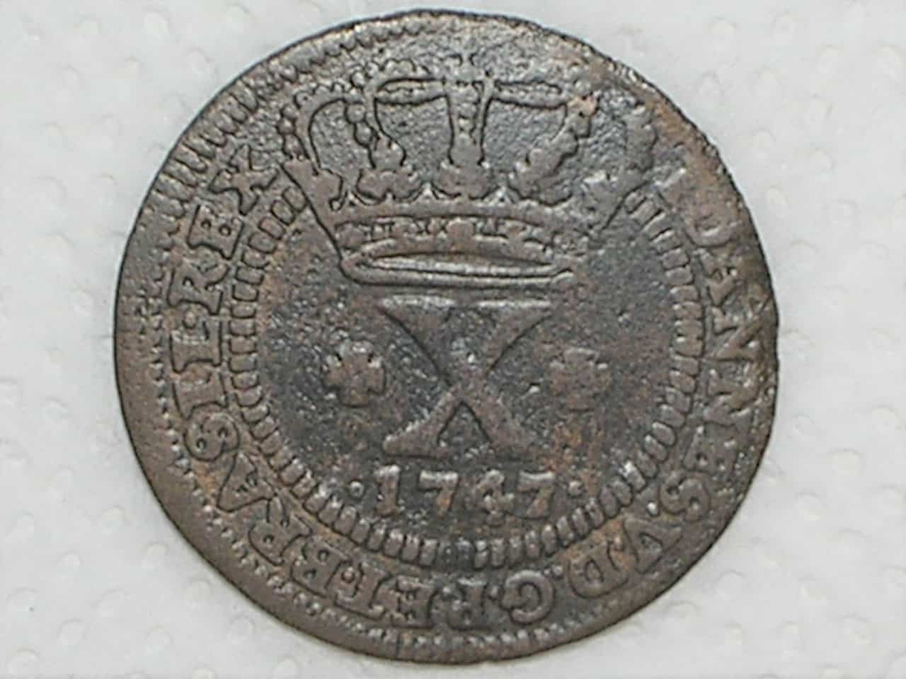 Muito escassa) X Réis – 1747 Bahia / 57 Perolas / Colônia de D. João V / Cobre / Bc/Mbc / Box22