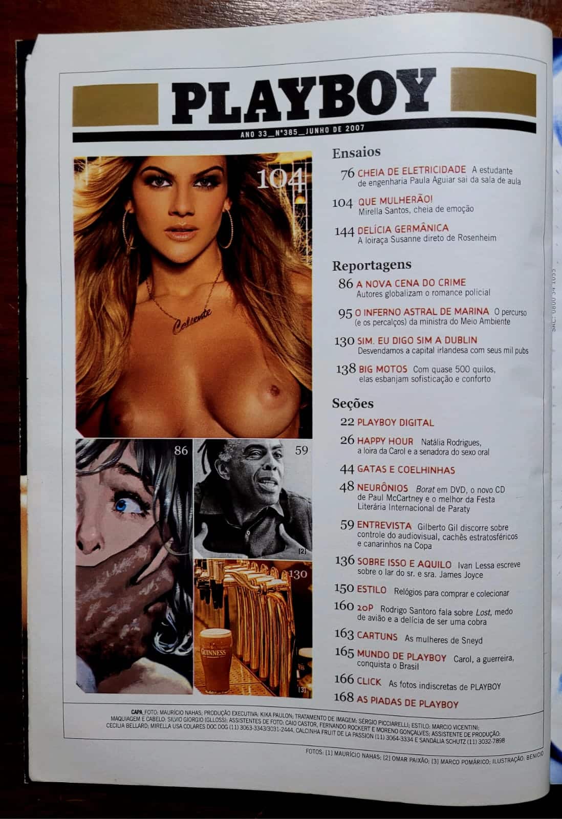 - Pág. 59 — Entrevista: Gilberto Gil — o Ministro da Cultura discorre sobre controle do audiovisual, cachês estratosféricos e canarinhos na Copa. Uma das entrevistas mais politicamente relevantes da Playboy brasileira daquele ano.