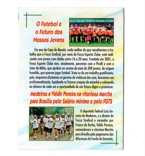 Propaganda Antiga Tabela Copa Mundo Futebol – Japão / Coreia do Sul – 2002 – Politica Deputados – Força Sindical Estadual e Federal