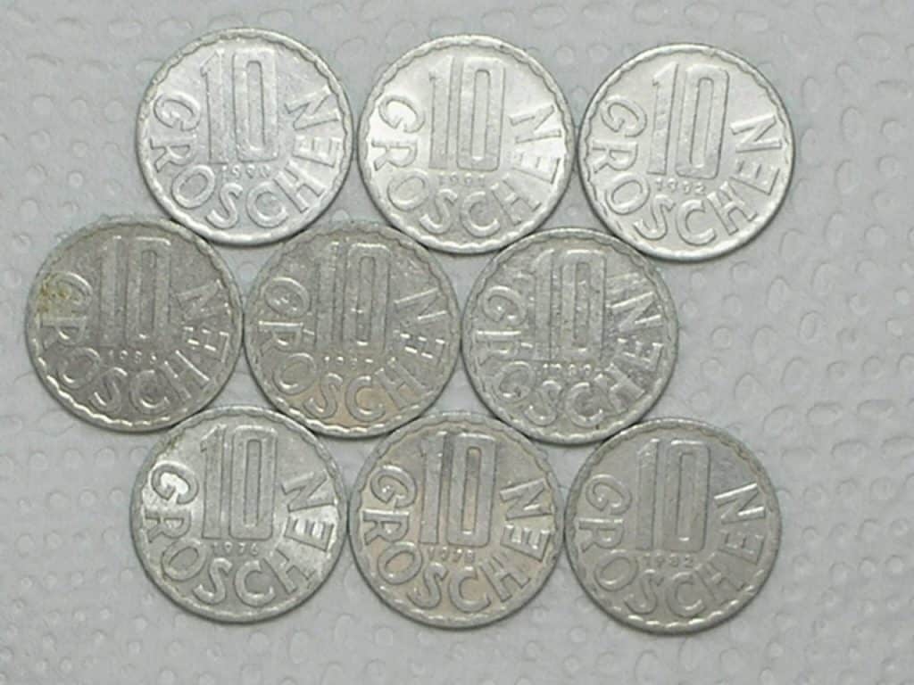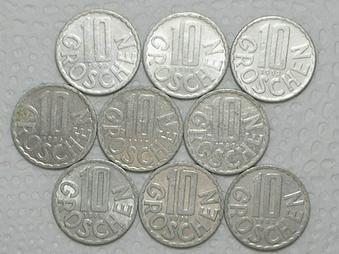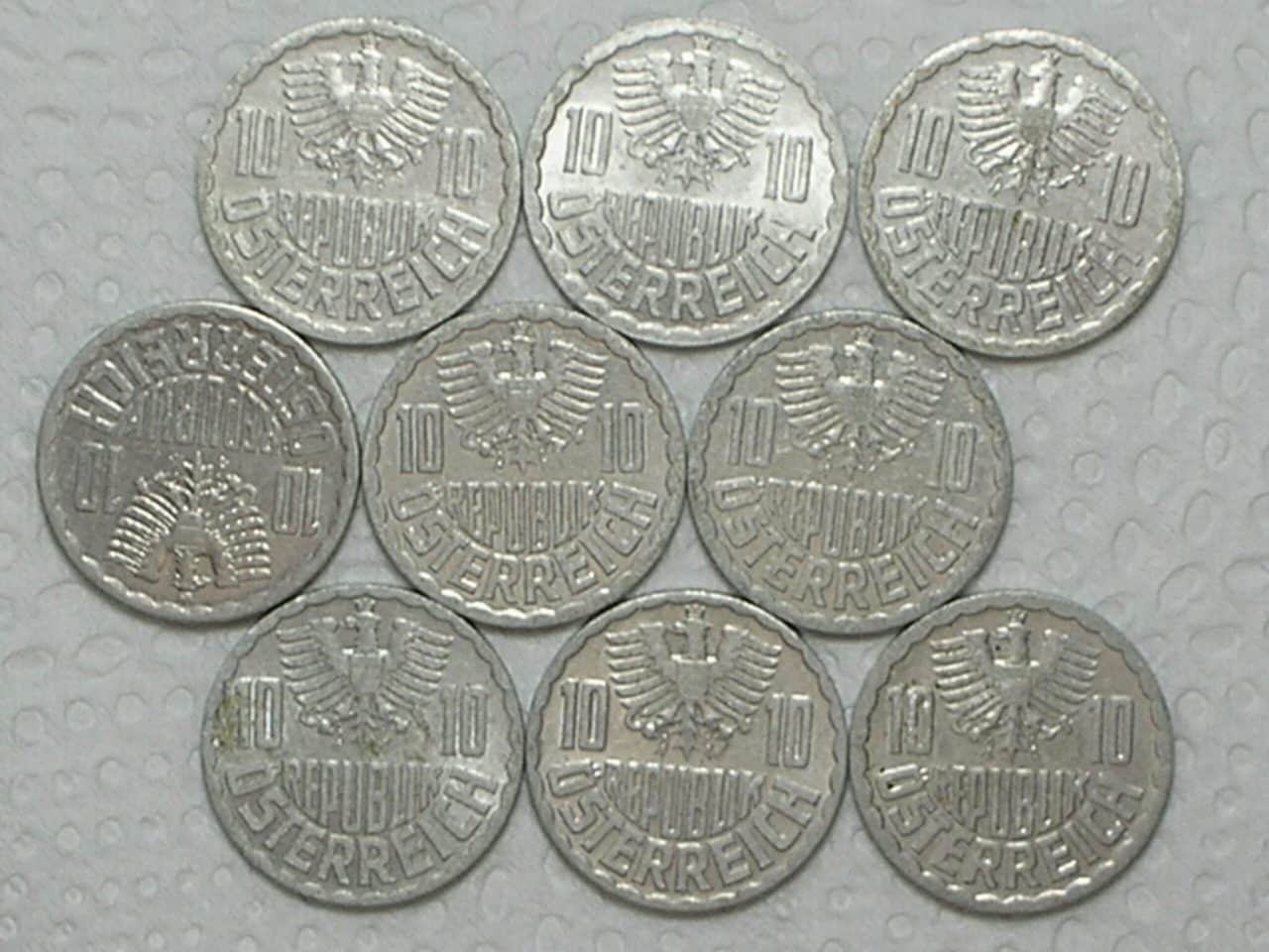 Especificação: Série Áustria 10 Groschen – 1976/1978/1982/1986/1987/1989/1990/1991/1992 / cod 480